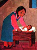 I magi, anch'essi, vedono il bambino con sua madre che lo accudisce.